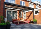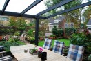 Lees meer >>LaFora terrasoverkapping/ tuinkamer met gelaagd melkglas, ook een beloopbaar dak, om eventueel de ramen erboven makkelijk schoon te maken. De bestaande zonwering is geplaatst onder de aansluiting v...