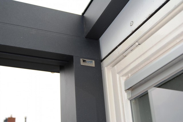Vanaf de dag dat het is geplaatst wordt er 's ochtends ontbeten en na het werk 's avonds de warme maaltijd genomen, heerlijk in de nieuwe lichte buitenruimte, frisse lucht, het buitenzijn maar beschut zitten. Deze klant vertelde diverse malen het genot van de LaFora terrasoverkapping. Na goed inmeten en uitwerken, en alles goed voorbereiden is deze LaFora tot in detail correct geplaatst. Binnenzijde kolom voorbij het uitzetraam, buitenzijde goot binnen de achtergevel van de bestaande uitbouw. Het zetwerk, exact op maat gemaakt, voor de aansluiting boven de bestaande daken, alles tot in detail vakkundig geplaatst. Zie gemaakte foto's. RVS spots als verlichting, allemaal voor maximaal genot van deze diepe LaFora terrasoverkapping, 4 meter diep, en ook opnieuw gelaagd glas gebruikt voor een professionele look en maximaal daglicht. We kwamen voor de foto's maken en het begon te regenen, dan is het helemaal heerlijk eronder, volop genieten!.
